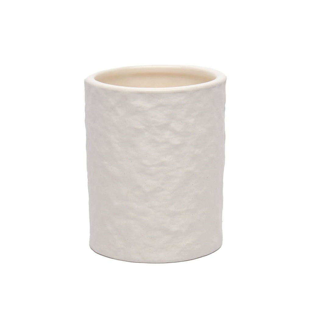 Skab en stemningsfuld atmosfære i dit hjem med denne elegante og enkle lysestage. Designet er lavet af hvid keramik med en rå, tekstureret overflade, der giver et moderne og håndlavet udtryk. Lysestagens minimalistiske cylinderform gør den til et tidløst valg, der passer ind i enhver indretning.