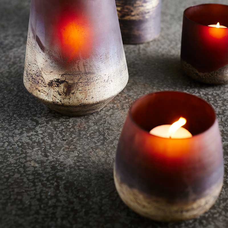 Den smukke, mørke farve med guldtoner kaster en varm belysning ud i rummet, der sender tankerne i retning af smuk solnedgang en varm sommeraften. Lana kan bruges både som lanterne, vase eller krukke, og hver funktion bringer en varm og unik stemning ind i indretningen.