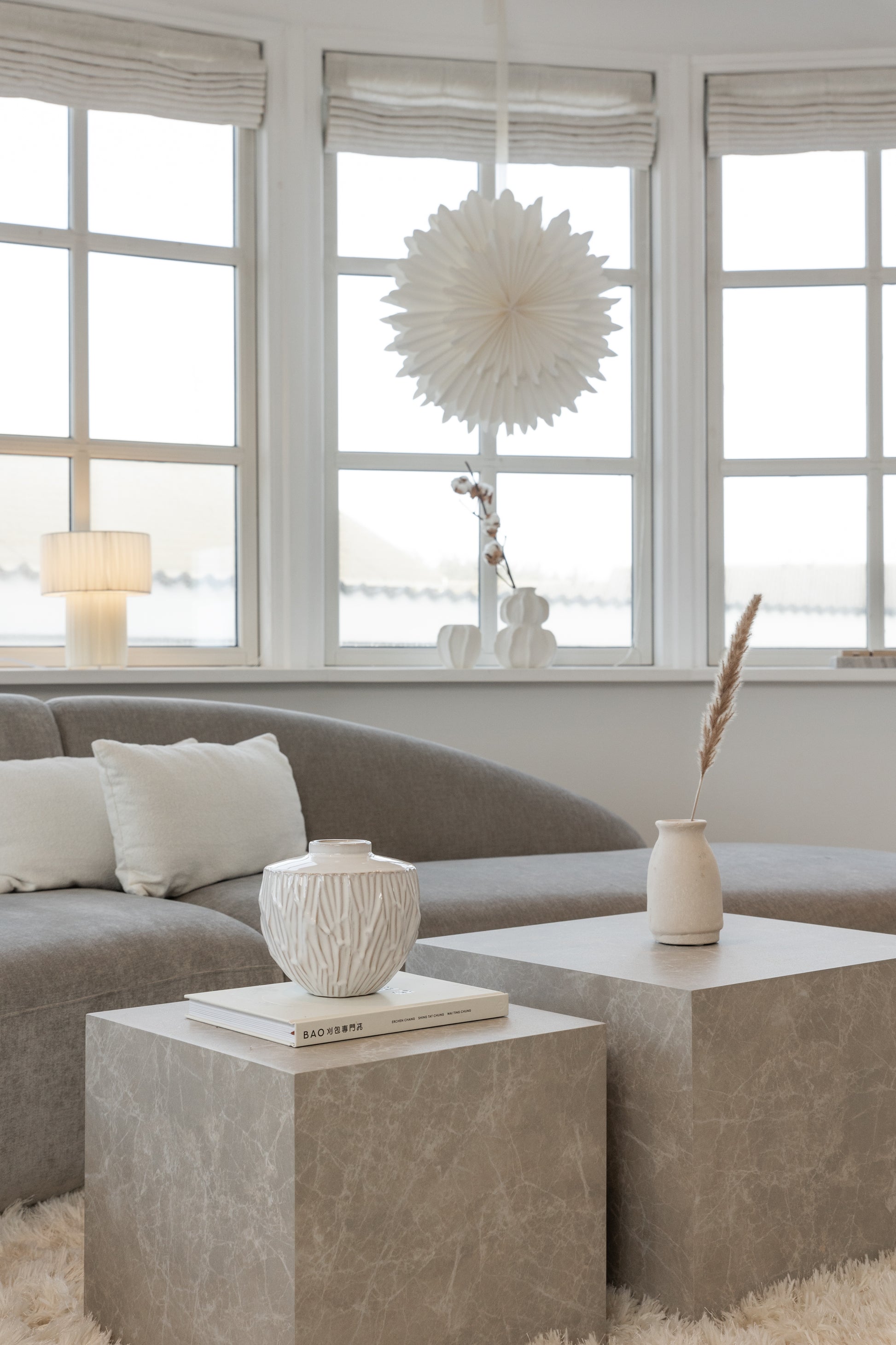 Living Copenhagens Solace Vase er et unikt design, der bringer en følelse af ro og naturlighed ind i dit hjem. Med sin bløde, beige nuance og lette papmachéstruktur er denne vase det perfekte valg til dig, der ønsker at tilføje et jordnært og elegant element til din indretning.